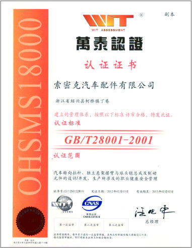 公司已先后通過IATF16949質(zhì)量管理體系認(rèn)證、ISO/14001環(huán)境管理體系認(rèn)證和OHSAS18001職業(yè)健康安全管理體系認(rèn)證。是“國(guó)家高新技術(shù)企業(yè)”“行業(yè)龍頭企業(yè)”和“全國(guó)百家優(yōu)秀汽車零部件供應(yīng)商”。